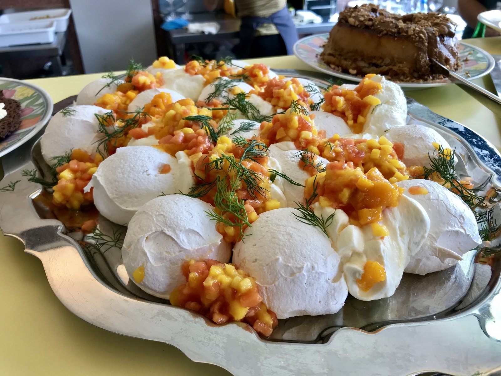 8- pavlova, mango, papaya, curd de lima