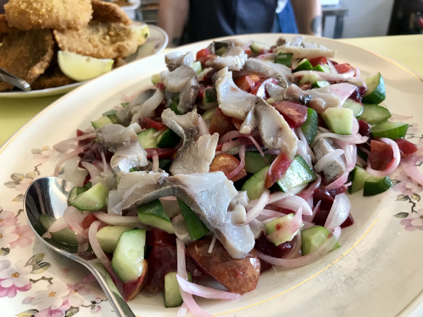 7- anchoa curada, pepino, ciruela, cebolla morada y remolacha asada