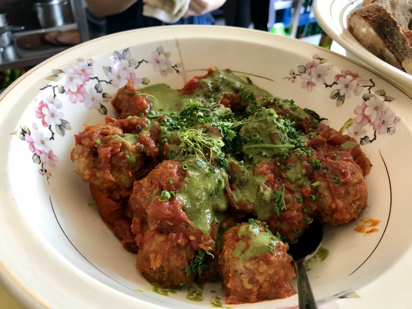 Cocinan con los productos que utilizaron toda la semana, así la semana entrante empiezan la producción desde cero. Por lo cual podés encontrarte con un montón de platos diferentes. Y cada vez que vayas va a ser única. Podés comer los platos en el orden que quieras, y cada vez que se termine una fuente repondrán otra: igual, o tal vez no!