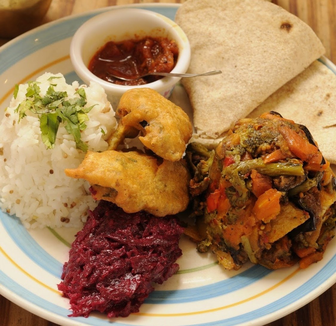 El uso de especias está muy presente en Krishna. Brillan los chutneys -que los hacen maravillosamente bien-, las albóndigas vegetarianas, la salsa de tomate, el tofu, el bife de seitán, los vegetales salteados. Son muy sabrosos los pakoras, el raitha, las papas gauranga y el curry de papas y arvejas al coco … Muy bueno el chapati también.