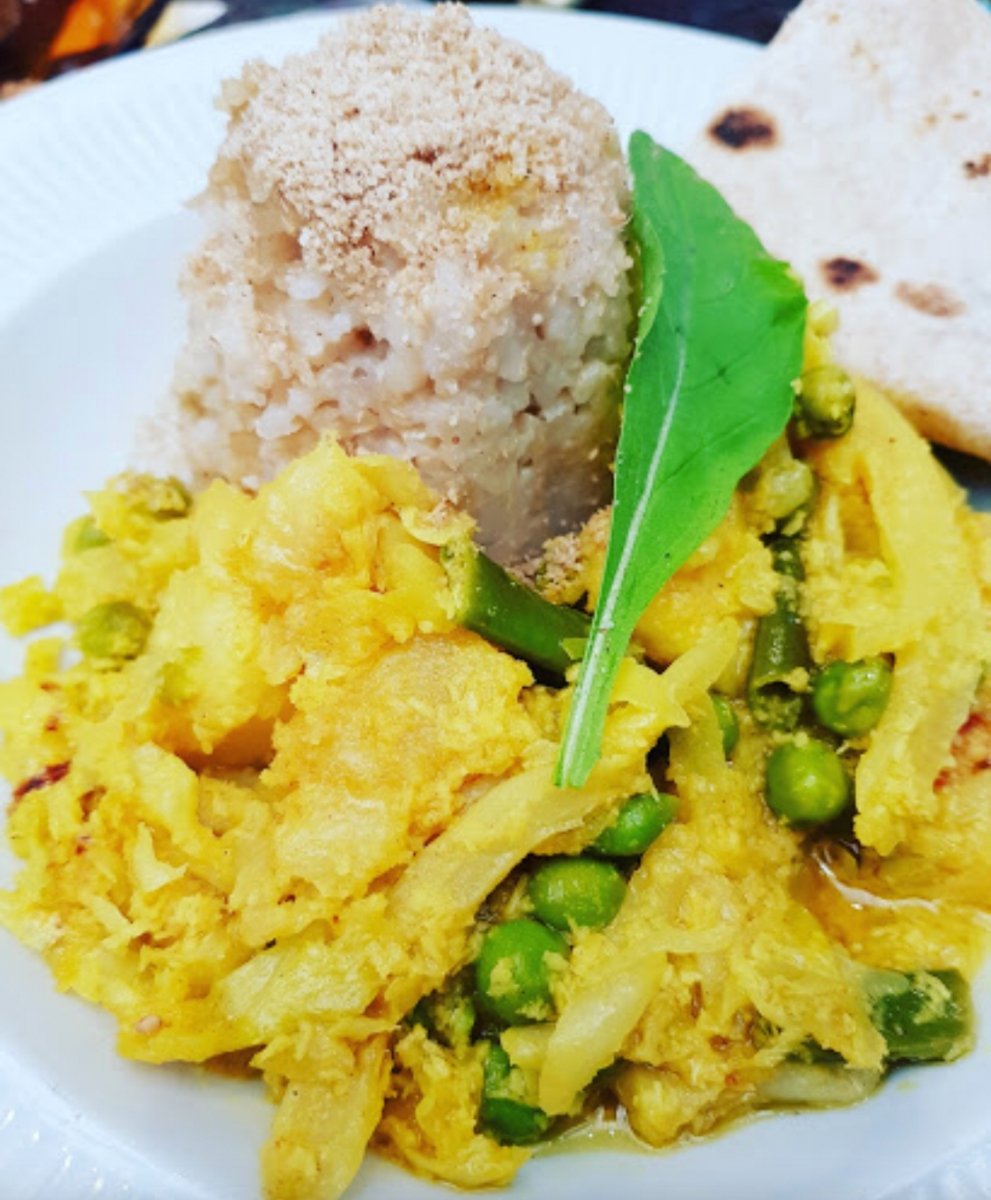 Tampoco consumen liláceas. Es que según el ayurveda, la ciencia médica clásica de la India, los alimentos se agrupan en tres categorías – sáttvica, rajásica y tamásica – alimentos en las modalidades de la bondad, la pasión y la ignorancia, y las cebollas y el ajo, y las otras liáceas se clasifican como rajásica y tamásica, lo que significa “que aumentan la pasión y la ignorancia”, nos explica Marcela, la genia de nuestra mesera.