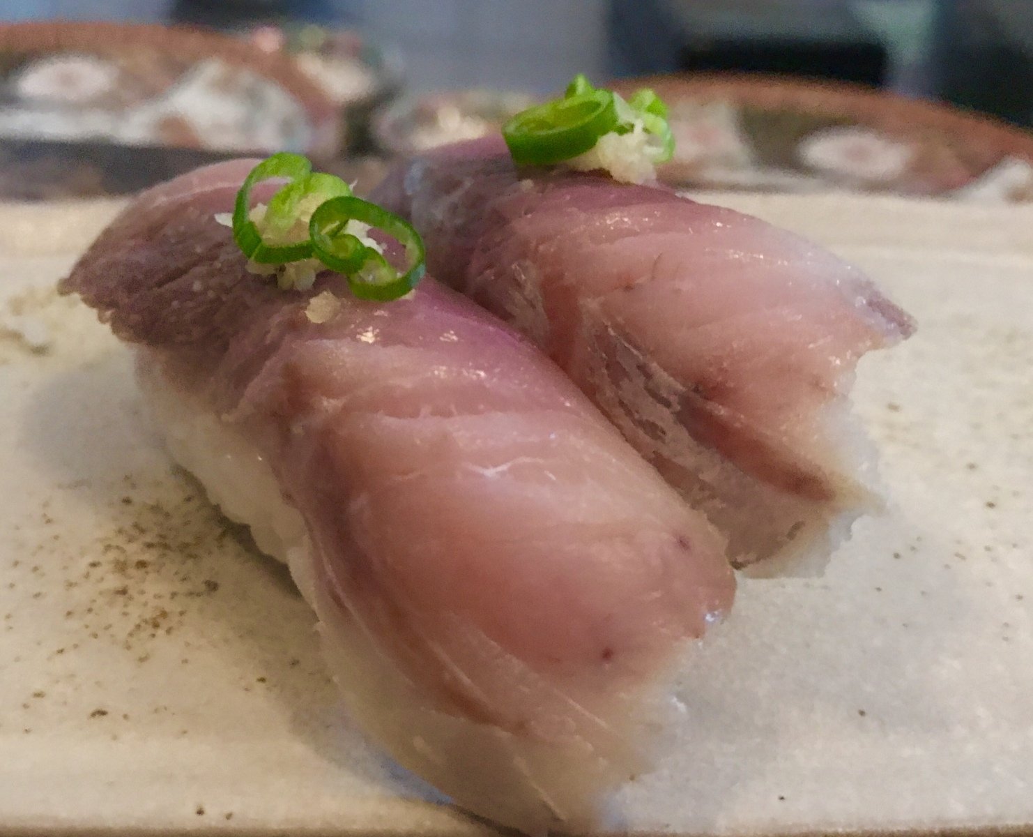 Al terminar la comilona Germán nos preguntó cuáles dos nos habían gustado más:   Coincidimos en el niguiri de albacora de Vietnam y en el maki de vieira y cilantro.   Y nos trajeron cuatro piezas más!!!